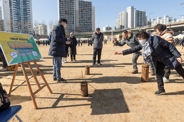 | ▲ 지난해 양천구, 정월대보름 민속축제에서 투호 던지기를 체험하고 있는 주민들 |