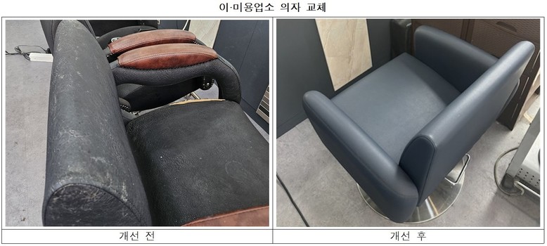 이‧미용업소는 현 소재지에서 5년 이상 운영 중인 업소가 대상이다. 지원 항목은 세면대, 샴푸의자, 전기온수기, 도배, 바닥타일 등 영업시설 개선이다.