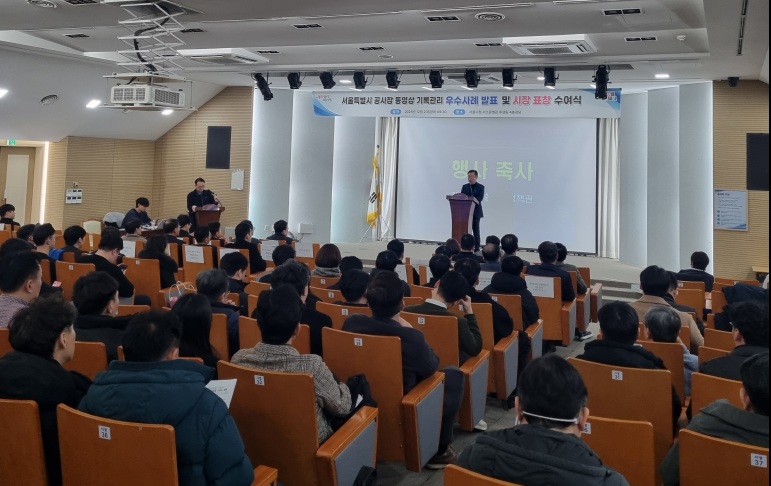 [서울 세계타임즈=이장성 기자] 서울시가 건설현장의 투명성·안전성을 높이고 부실공사를 막기 위하여 2023년 7월 민간 건설사들에게 동영상 촬영·기록을 요청한 이후 그간건설 안전에 기여해 온 공공·민간부문 우수현장을 대상으로 공로를 치하하고자 23일 시청 서소문별관 후생동 강당에서 ‘서울특별시 공사장 동영상 기록관리 우수사례 발표 및 시장표창 수여식’을 개최했다고 밝혔다.