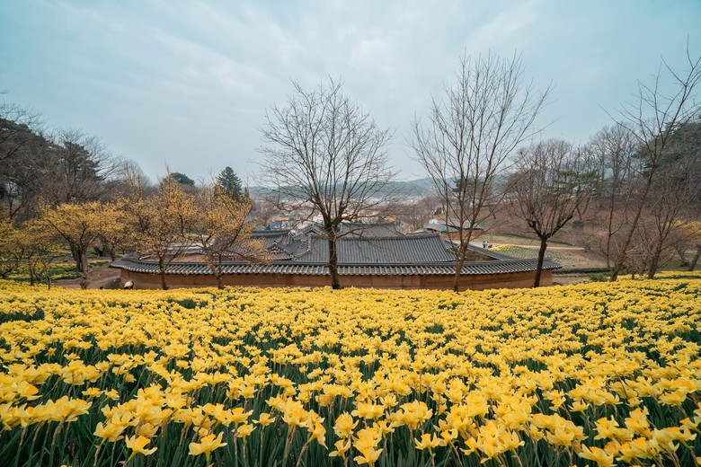 1919년 건립된 전통 가옥을 배경으로 2만 평 넘는 대지에 펼쳐진 수선화와 고택의 정취는 겨우내 묵은 피로를 덜어낼 시간을 준다.