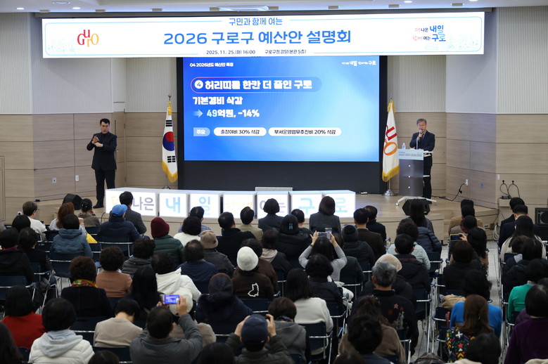 장인홍 구로구청장은 “이번 설명회는 구민과 함께 구정의 방향과 미래를 공유하고 의견을 나누는 뜻깊은 자리”라며, “앞으로도 구민의 관심과 참여가 실제 예산과 사업 과정에 반영될 수 있도록 많은 참여를 바란다”고 말했다.