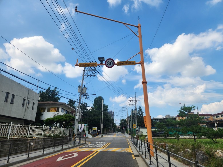 | ▲ 항동초등학교 인근 항동주민센터 앞에 새롭게 설치된 무인교통단속장비 |