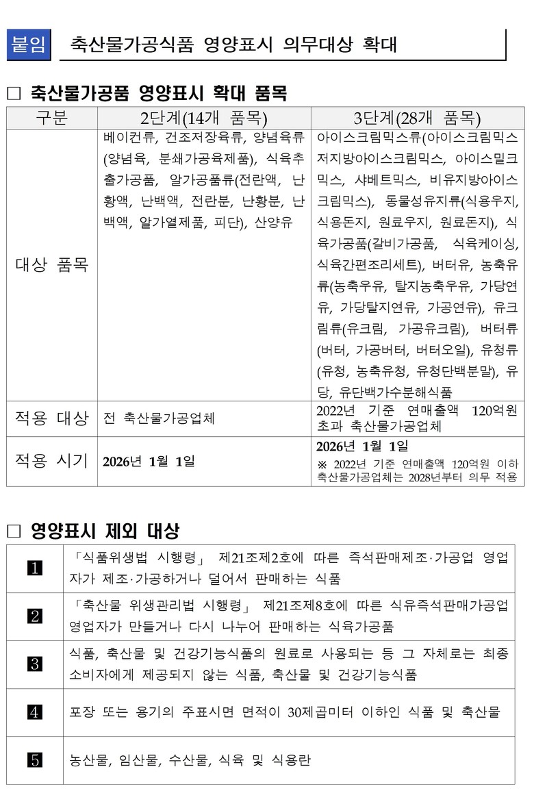다만, 버터류, 식육간편조리세트와 같은 특수 품목의 경우에는 2028년까지 적용 범위가 추가로 확대된다.