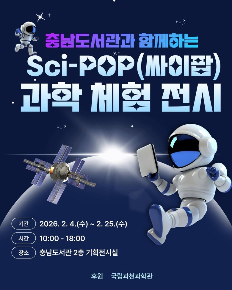 싸이팝(Sci-POP)은 충남도서관을 방문하는 이용객이라면 누구나 무료로 관람할 수 있으며, 자세한 사항은 충남도서관 누리집을 참고하거나 전화(041-635-8024)로 문의하면 된다.