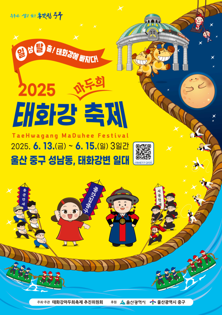축제의 백미, 울산 큰줄당기기 ‘마두희’는 6월 14일(토) 오후 4시부터 7시까지 성남동 시계탑사거리에서 진행된다.