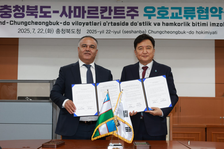 충북도는 22일(화) 도청 소회의실에서 김영환 충북도지사와 보보예프 아디즈(Boboev Adiz) 사마르칸트 주지사가 참석한 가운데 우호교류협약을 체결했다고 밝혔다.