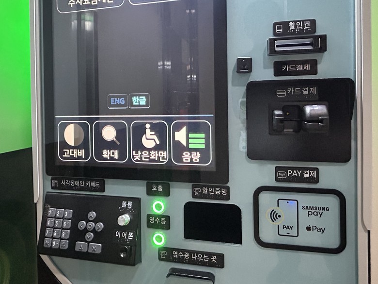 새로 설치된 무장벽 무인정산기는 휠체어 이용자와 고령자의 신체 조건을 고려해 화면 높이를 낮추거나 조절 가능하도록 설계됐다. 휠체어에 앉은 상태에서도 버튼 조작이 가능한 것이 특징이다. 또 저시력자와 고령자를 위해 화면 확대 기능과 고대비 화면 모드를 적용하고, 음량 조절 기능을 더해 시인성을 높였다.