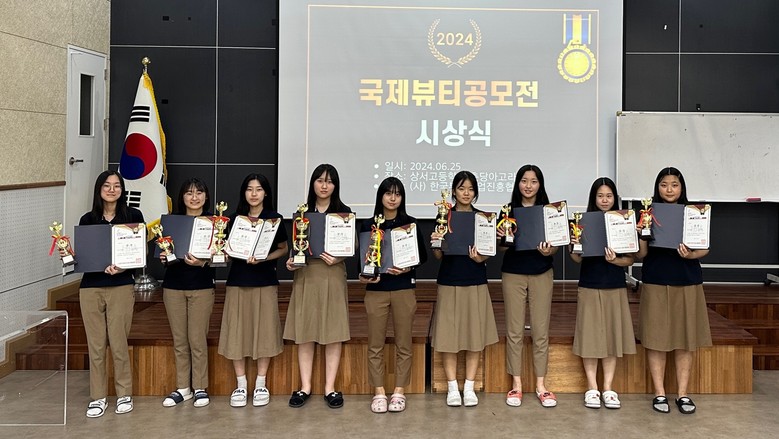 한편, 상서고는 헤어, 피부, 메이크업, 네일부문의 국제뷰티공모전 등 각종 경기대회에서 학생들이 상위 입상하여 전공에 대한 자긍심을 높이고 있으며, 최우수 기관상과 미용교육의 최우수 지도자상도 수상한 바 있다.