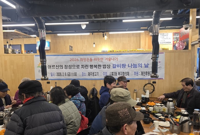▲ 지난 6일 시흥3동 복지협의체(위원장 김명자)는 2026 희망온돌 따뜻한 겨울나기 사업의 일환으로 관내 식당에서 저소득 가구 어르신들을 모시고 ‘어르신의 정성으로 차린 행복한 밥상, 갈비탕 나눔의 날’ 행사를 진행했다.