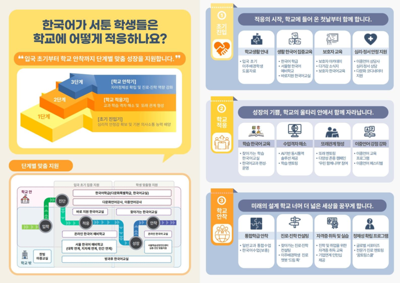 ‘초기 진입기-학교 적응기-학교 안착기’까지 이어지는 3단계 성장 모델을 통해 시기별로 필요한 맞춤형 지원을 제공한다.