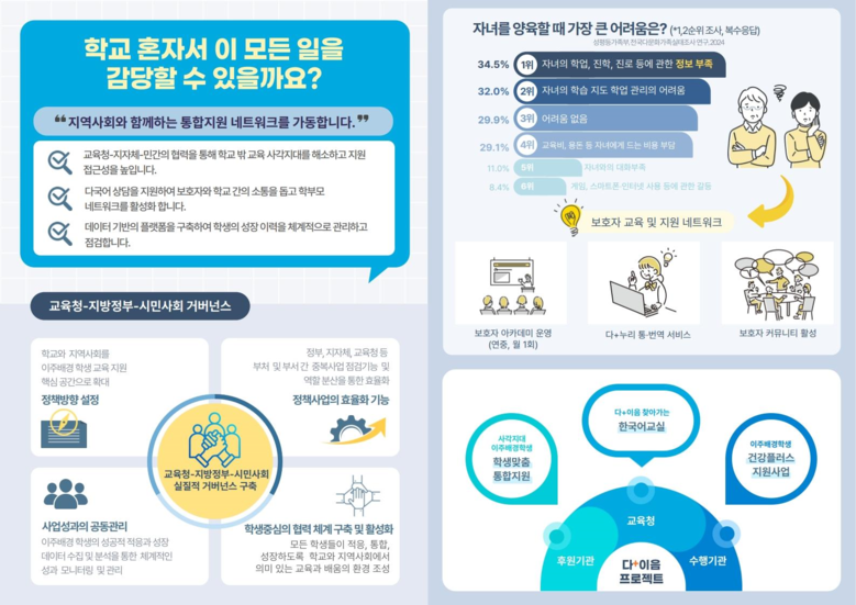 16개 언어 교육정보지 보급, 보호자 아카데미 정례화, 다국어 서비스 확대를 통해 보호자가 학교와 보다 원활히 소통하고 자녀 학습을 지원할 수 있도록 한다.