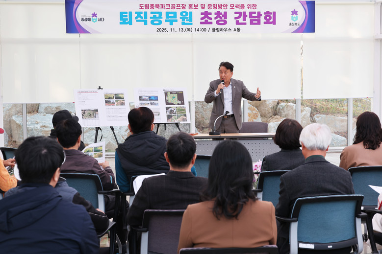 이날 간담회에는 김영환 충북도지사를 비롯해 도정 발전에 기여한 퇴직공무원 45여 명이 참석해, 도립 파크골프장 시설 현황과 향후 운영계획에 대한 설명을 듣고 다양한 의견을 나눴다.
