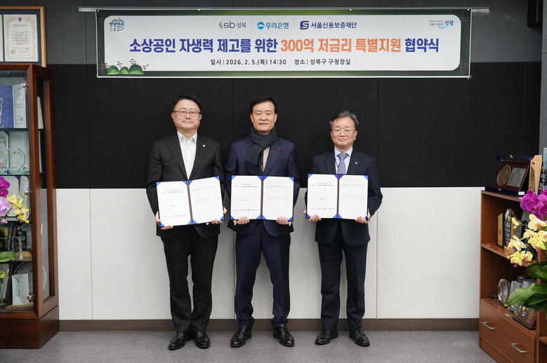 이승로 성북구청장은 “재원 마련과 기업체 보증에 도움을 주신 우리은행과 서울신용보증재단에 진심으로 감사드린다”며 “이번 협약을 통해 고금리와 고물가로 어려움을 겪는 성북구 소상공인들이 다시 도약할 수 있도록 지속적으로 지원하겠다”고 말했다.