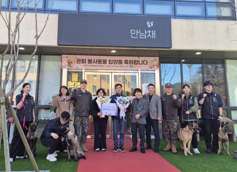 이강영 경기도 축산동물복지국장은 “은퇴군견 입양이 빨리 이루어짐은 국가봉사동물에 대한 사회적 관심과 동물복지 인식이 한 층 높아졌음을 보여준다”며 “경기도는 지속적으로 공공적 역할과 반려동물 복지정책 실현에 앞장서겠다”고 말했다.