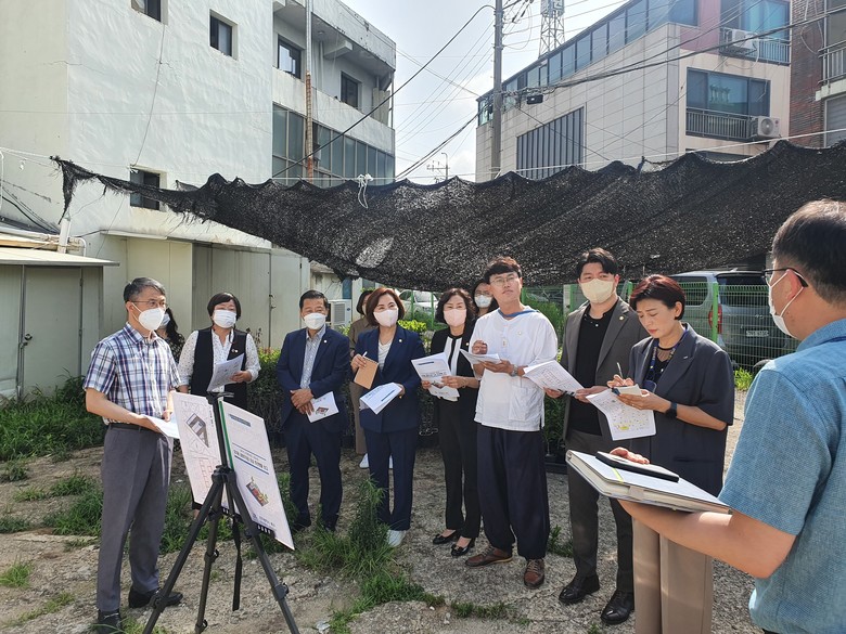 [북구 세계타임즈=손권일 기자] 북구의회 행정자치위원회(위원장 전미용) 소속 위원들이 15일(금) 2022년 수시분 공유재산관리계획안 심사대상지인 오치동 공영주차장 조성부지를 방문하여 현장활동을 펼치고 있다.