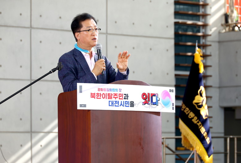 [대전 세계타임즈=이채봉 기자] 대전시의회 조원휘 의장은 12일 엑스포시민광장에서 개최된 2025년 평화통일 화합의 장에 참석해 이웃사촌으로서 북한이탈주민을 환영하며 안정적 정착과 자립을 위한 관심과 지원을 약속했다.