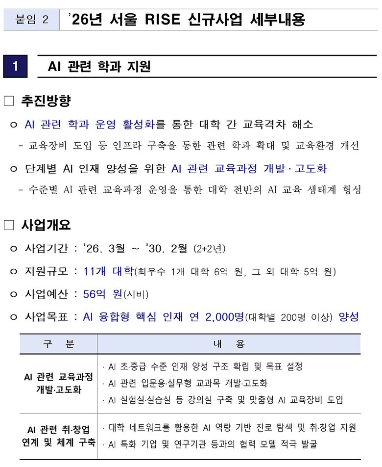 - 시, “서울 RISE 통해 대학의 AI·이공계 역량을 산업현장