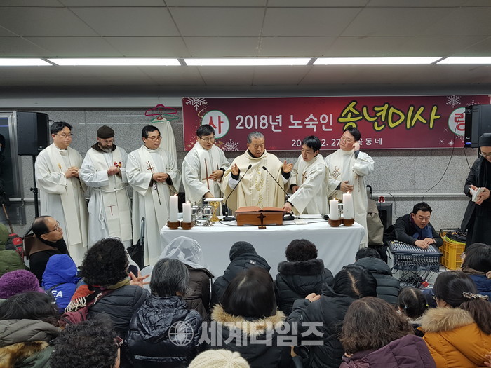 미사와 함께 선물 등 겨울 방한복 나눔을 노숙인 1500명에게