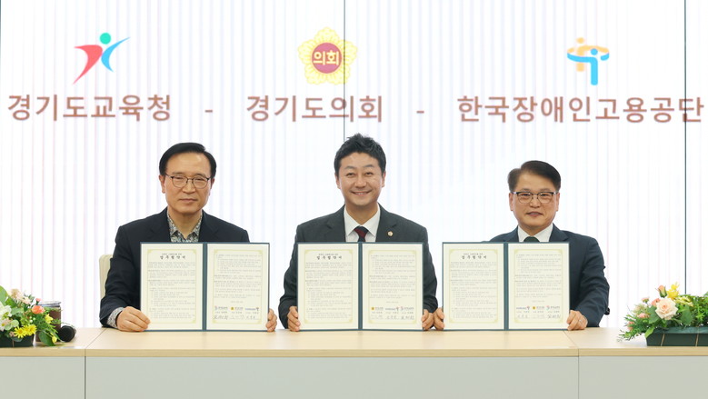 [경기도 세계타임즈=송민수 기자] 경기도의회(의장 김진경)는 24일 의회 예담채에서 경기도교육청 및 한국장애인고용공단과 업무협약식을 열고, 도내 장애인의 고용증진에 함께 힘을 모으기로 했다.