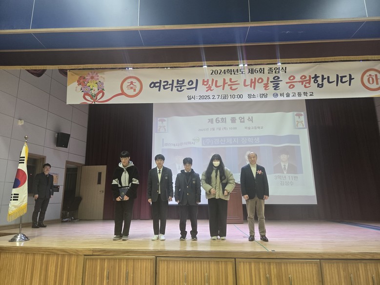 기탁금은 7일(금) 졸업식에서 경산제지의 대표이사(관계자)가 장학생으로 선발된 학생들에게 전달한다. 경산제지는 경기 침체로 기업 환경이 어려워지는 상황에서도 지역사회 기여를 위한 나눔을 이어가고 있다.