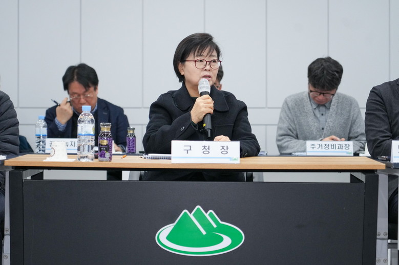 | ▲ 이순희 강북구청장(가운데)이 지난해 2월 개최된 ‘주거지정비 기본계획 중간보고회’에서 발언하고 있는 모습 |