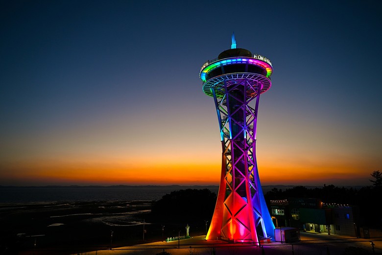 홍성 스카이타워는 65m 높이의 전망대로 남당항을 넘어 보령까지, 북쪽으로는 궁리포구 뒤 서산까지 서해 전경을 조망할 수 있고 천수만의 수려한 경관과 붉게 물드는 서해의 낙조를 볼 수 있다.