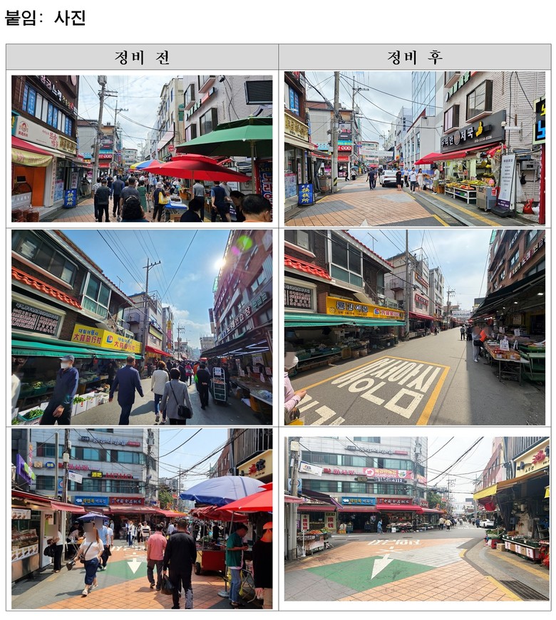 정비 과정에서는 우선 자진 정비를 유도하고, 이후 반복되는 위반 사례에 한 해 과태료 부과와 원상회복 명령 등을 적용해 정비의 실효성을 높였다. 또한 사유지 내 적치물처럼 법적 조치가 어려운 사안에 대해서는 건물주, 상인과 지속적인 협의를 통해 보행 환경 개선을 이어갔다.