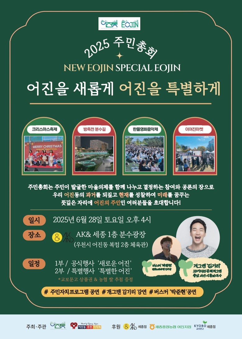 또한, 개그맨 김기리의 명사 초청 특강과 가수 박준현의 음악 공연이 펼쳐져 주민 자치와 문화 행사가 어우러진 자리가 될 계획이다.