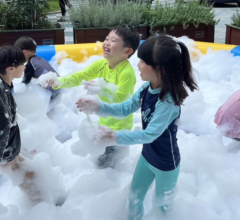 이번 프로그램은 수영장 체험, 워터슬라이드 놀이, 버블 놀이 등 유아들이 즐겁게 몰입할 수 있는 활동으로 구성되었으며, 단순한 신체 활동을 넘어 IB 학습자상인 ‘탐구하는 사람’,‘균형 잡힌 사람’,‘배려하는 사람’ 등을 바탕으로 교육과정이 설계되었다.