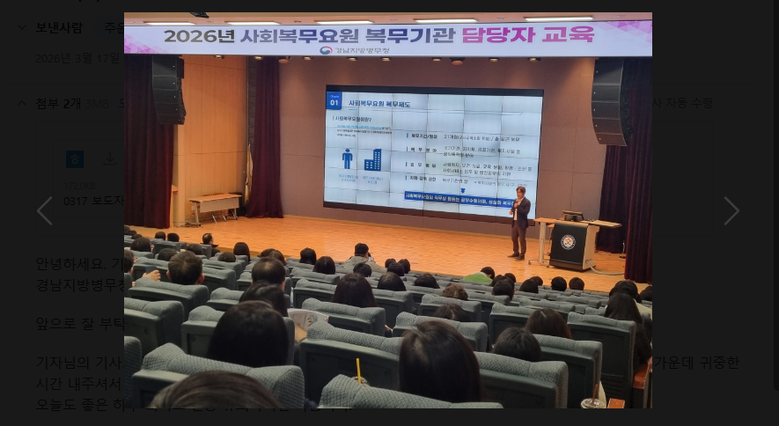 한편 경남지방병무청 관계자는 “찾아가는 현장 교육을 통해 복무기관 담당자의 역량을 강화하고, 다양한 복무사례와 노하우 전수로 사회복무요원이 성실하게 복무할 수 있도록 복무관리를 위한 협력체계를 유지해 나가겠다”고 전했다.