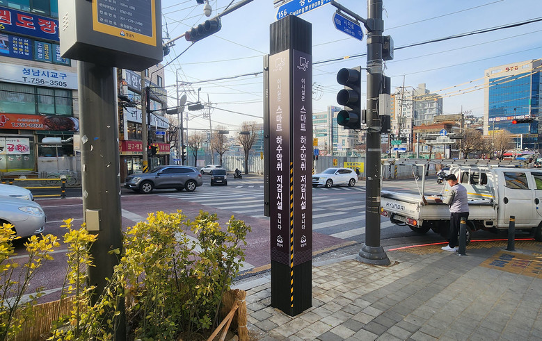 | ▲ 성남시 수정구 신흥2동 보행로 구간에 설치한 스마트 하수악취 저감시설 |