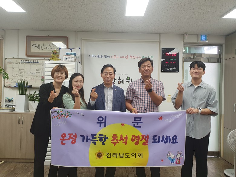 [전남 세계타임즈=우덕현 기자] 전남도의회 보건복지환경위원회 서대현 부위원장(더불어민주당, 여수2)은 21일, 추석 명절을 맞아 소외되는 이웃 없이 풍성한 명절이 되길 바라는 마음으로 여수시에 소재한 사회복지시설 6곳을 찾아 위문품을 전달했다.