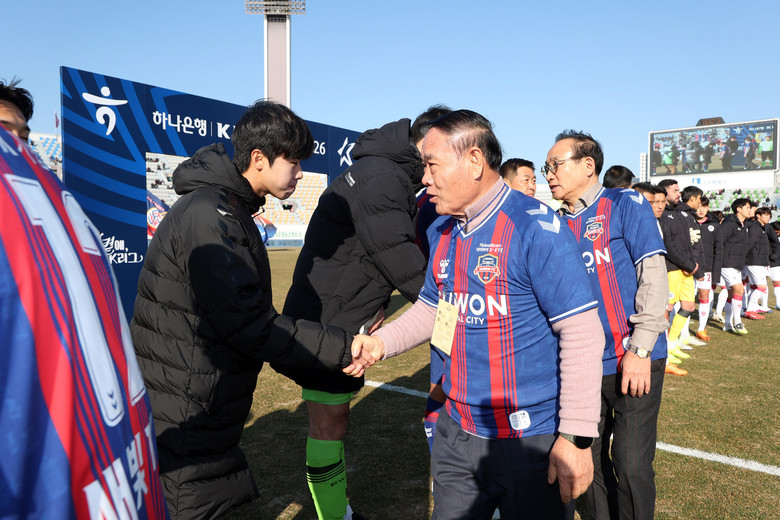 이재식 의장은 선수단을 격려하며 “수원FC가 시민들에게 큰 즐거움과 자부심을 안겨주는 구단으로 더욱 성장하길 기대한다”며 “선수들이 부상 없이 멋진 경기를 펼치길 응원한다”고 말했다.