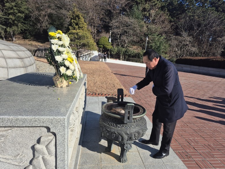 이번 참배는 윤학보 사무국장의 사회로 김종식 회장의 대표 헌화 및 분향을 시작으로, 이환수 명예회장, 임준호 자문위원, 부회장 구자도, 백지원, 정규헌, 변현석, 정현숙, 고정대 감사, 김덕진 재무국장, 정경숙 간사, 교정위원 김영일, 정성청, 김정석, 김용훈, 정용헌 교정위원들의 차레로 예례를 갖추어 나라를 위해 희생한 선열들의 숭고한 정신을 기렸다.