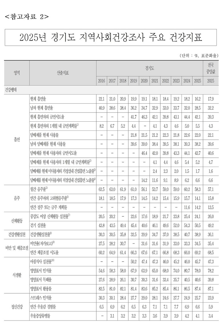 경기도는 도내 48개 보건소에서 실시한 ‘2025년 지역사회건강조사’의 주요 결과를 발표했다.