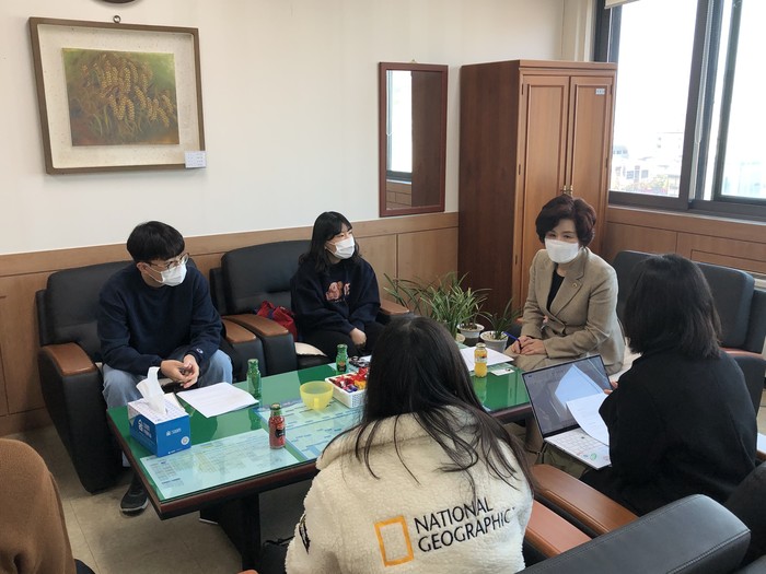 [충북=세계타임즈 이현진 기자] 정책복지위원회 이숙애(청주1) 부위원장은 지난 26일 정책복지위원실에서 충북청소년종합진흥원 청소년알바인권센터 소속 청소년 인권기자단과 충청북도 청소년상담복지센터직원, 옥천신문 기자 등과 만나 청소년 인권을 주제로 인터뷰를 진행했다.