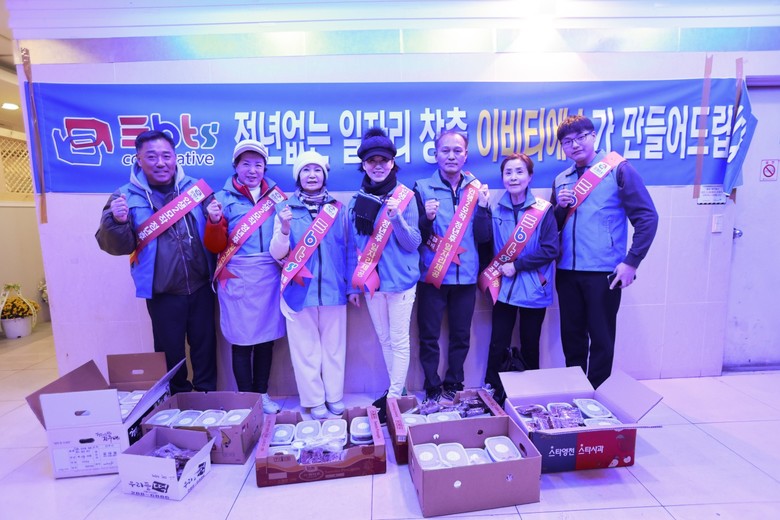 어제 12월 22일 노동지날에 '이 비티에스 협동조합' 저녁이 있는 삶 희망을 주유하는 이 비티에스 소셜벤처 기업 경남 연수원 원장 이수진은 조합원들과 함께 동지팥죽을 직접 쑤어 추위에 떨고 있는 상인들에게 따뜻한 팥죽과 팥시루떡 하나씩을 나눠드리며 사랑을 전달했다