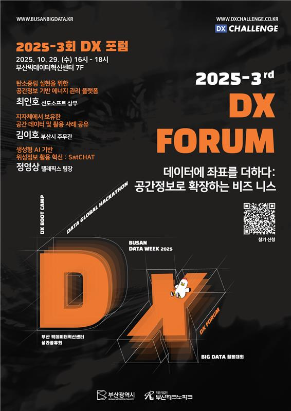 ◈ ▲탄소중립 실현을 위한 공간정보 기반 에너지 관리 플랫폼 ▲지자체 보유 공간 데이터 및 활용 사례 공유 ▲생성형 인공지능 기반 위성정보 활용 혁신 등 진행… 관심 있는 시민 누구나 부산빅데이터혁신센터 누리집을 통해 참가 신청 가능 [부산 세계타임즈=이용우 기자] 부산시(시장 박형준)는 오는 10월 29일 오후 4시 부산빅데이터혁신센터(해운대구 센텀동로 45)에서 「2025-3회 디지털전환(DX) 포럼」을 개최한다고 밝혔다.
