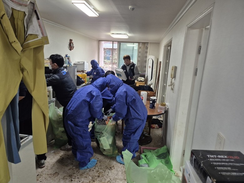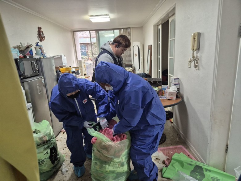 이날 봉사자들은 집 안에 쌓인 쓰레기를 수거하고 오염된 장판과 벽지를 정리했으며, 방역 소독을 병행하기도 했다.