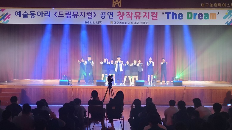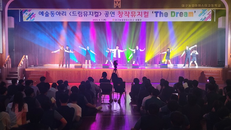 [대구 세계타임즈=한성국 기자] 대구농업마이스터고등학교(교장 서영석, 이하 대구농마고)은 교내 예술동아리 <드림뮤지컬> 학생들이 2023년 9월 7일(목) 15시 30분 교내 샘물관에서 교사와 학생 등 340여 명이 참석한 가운데 학교폭력예방 창작뮤지컬 ‘The Dream’ 공연을 선보였다고 밝혔다.