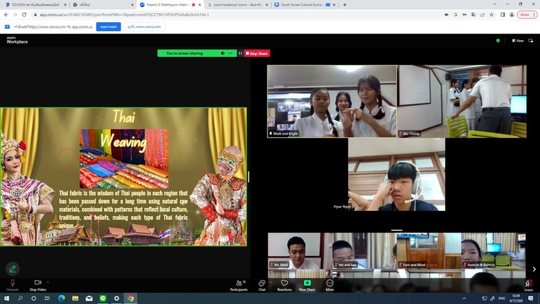 태국 학생들 역시 ▲Mulberry Paper(뽕나무 종이 공예) ▲Alm Flower(전통 조화) ▲Loy Krathong(전통 등불 공예) ▲Thai Weaving(직조 체험) ▲Earthenware(전통 토기 공예) 등을 체험하며, 자신의 작품을 영어로 소개하고 해밀중 학생들과 문화적 다양성을 나누는 소통을 이어가고 있다.