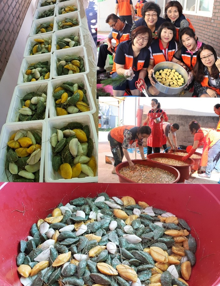 이날 밑반찬 봉사에는 주말에도 회원 100여명이 참석하여 송편과 나박김치를 정성스럽게 만들었다.