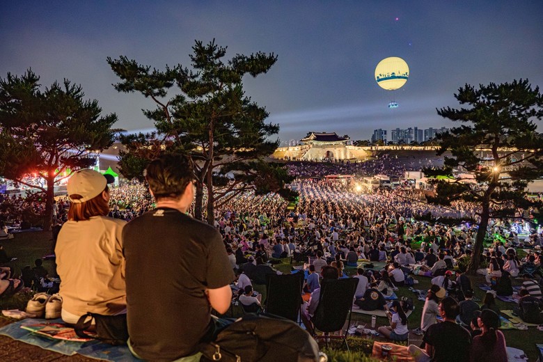 | ▲ 수원시민과 관광객들이 수원시 대규모 문화공연 중 하나인 수원화성헤리티지콘서트를 관람하고 있다. |