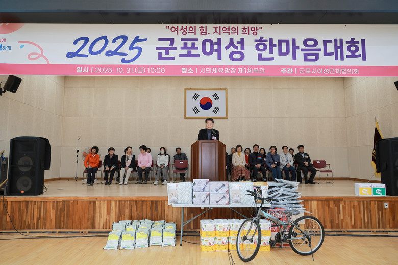 [군포시 세계타임즈=송민수 기자] 군포시는 31일 시민체육광장 제1체육관에서 14개 여성단체 650여 명이 참석한 가운데 2025년 군포여성 한마음대회를 개최하였다.