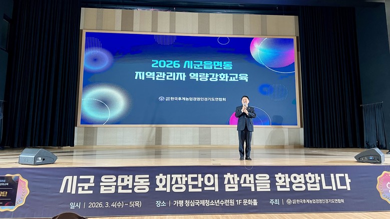 [경기도 세계타임즈=송민수 기자] 경기도의회 농정해양위원회 방성환 위원장(국민의힘, 성남5)은 4일 가평 청심국제청소년수련원 문화홀에서 열린 「(사)한국후계농업경영인 경기도연합회 시군읍면동 지역관리자 역량강화교육」 개회식에 참석해 농정의 방향과 현장 리더의 역할을 강조했다.