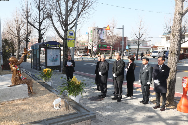 이날 추모식에서는 ‘기억과 소망’ 설치 7주년과 제106주년 3·1절을 기념하고, 헌화와 묵념으로 일본군 위안부 피해자 할머니들을 기렸다.