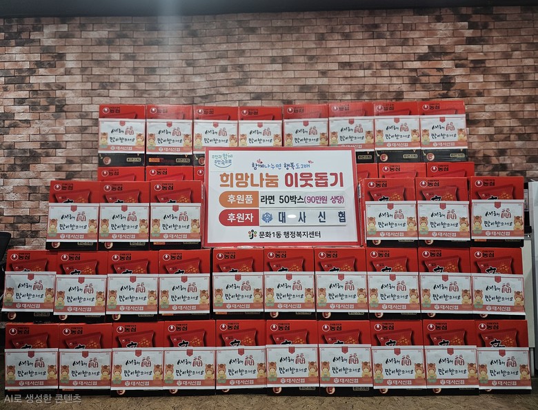 대사신협은 매년 명절마다 꾸준히 후원을 이어오며 지역사회 나눔문화 확산에 앞장서고 있으며, 이번에 기탁된 라면은 경제적 어려움을 겪고 있는 저소득 가정 및 취약계층에 전달되어 따뜻한 설 명절 분위기를 전하는 데 큰 도움이 될 것으로 기대된다.