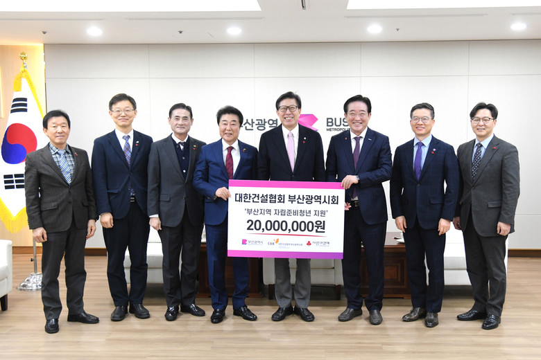 박형준 시장은 “지난해에 이어 올해도 지역사회의 따뜻한 손길이 필요한 사회취약 계층의 지원에 앞장서 주시는 대한건설협회 부산시회에 진심으로 감사드린다”라며, “이번 기부를 통해 우리시 자립준비 청년의 취업교육, 생필품 지원 등으로 지역사회의 따뜻한 정이 전달될 것으로 기대한다”라고 전했다.