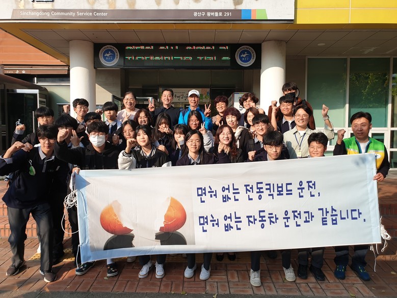 이날 학생들은 직접 디자인한 현수막을 통학로에 게시하고, 하교하는 학생들에게 개인형 이동장치 안전 이용수칙을 배포했다. 학생들은 지역 주민과 함께 안전한 교통문화 확산에 동참할 것을 다짐했다.