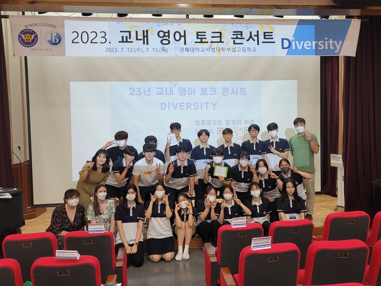 [경북 세계타임즈=한성국 기자] 경북대학교사범대학부설고등학교(교장 박재선, 이하 사대부고)는 7월 12일(수), 7월 13일(목) 양일간 학생 60명(20팀)과 사전 신청을 통해 구성된 청중 평가단 60명을 대상으로 ‘교내 영어 토크 콘서트’를 개최하였다고 밝혔다.